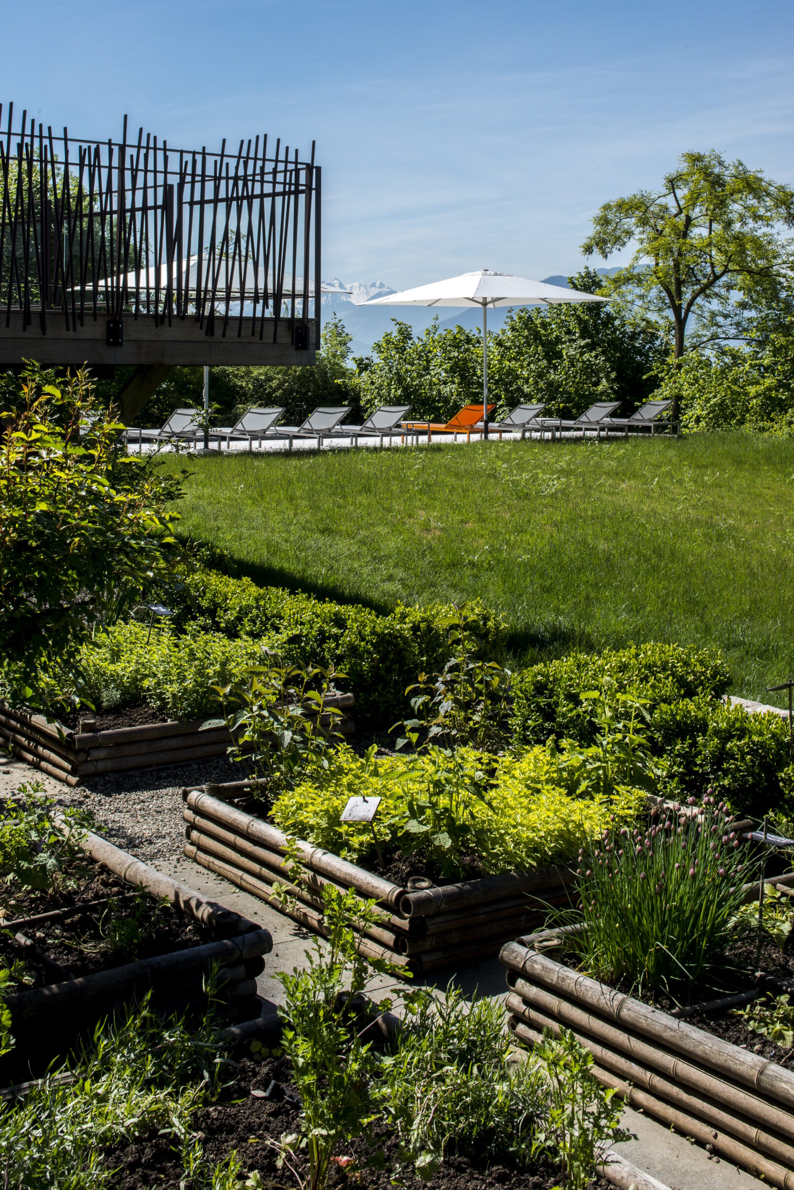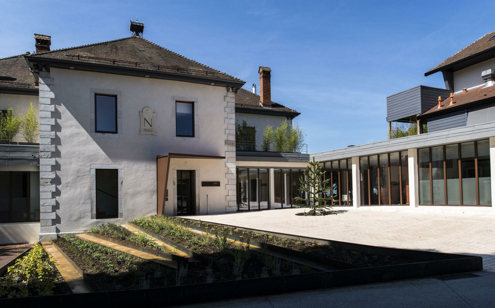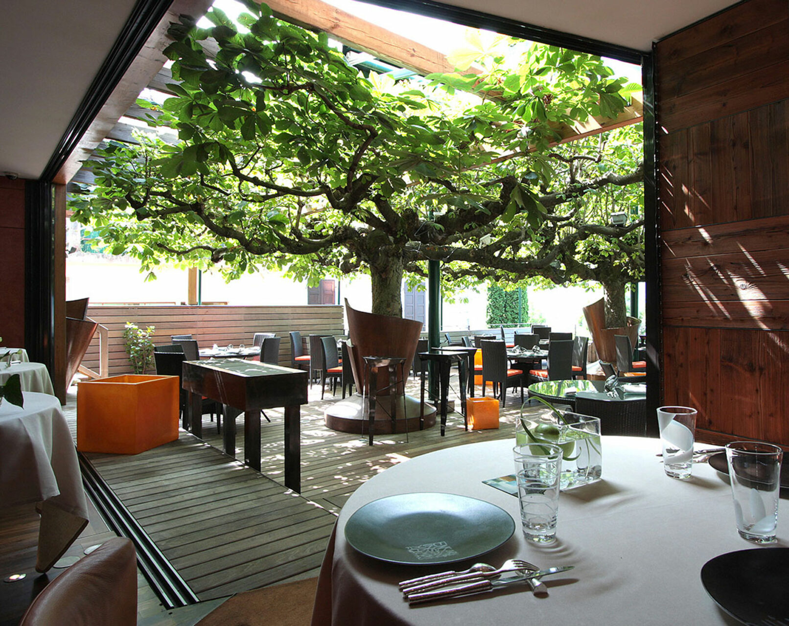 – Liaison de l’hôtel et du restaurant par une extension contemporaine qui donne une lecture horizontale de deux événements verticaux