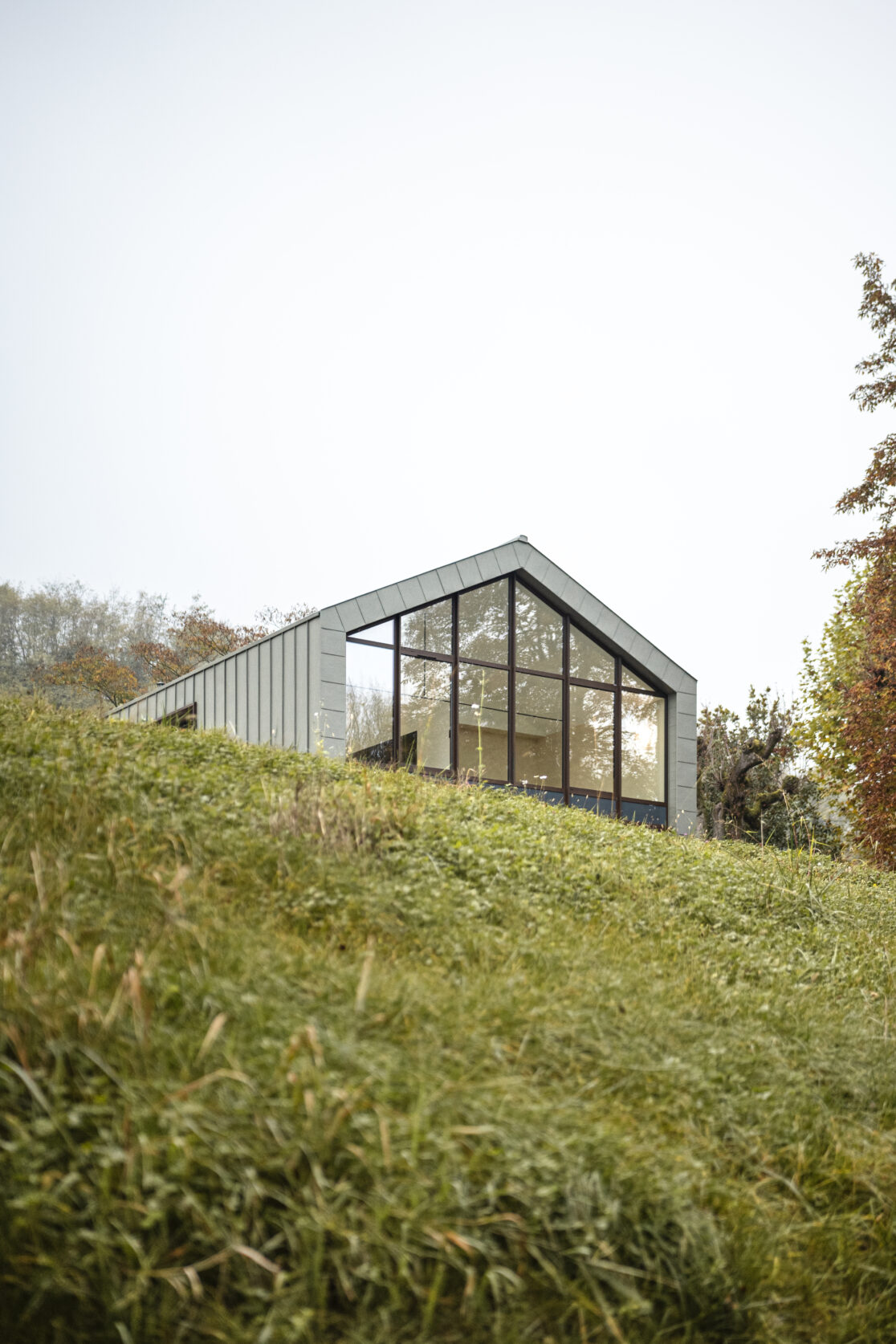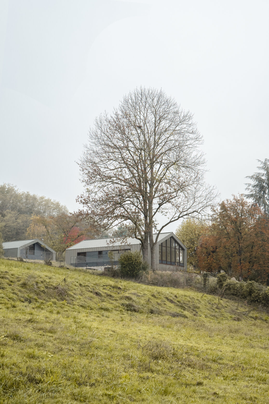 Le projet tire partie d’une zone non constructible traversant le terrain, pour créer deux volumes : la maison et sa grange.