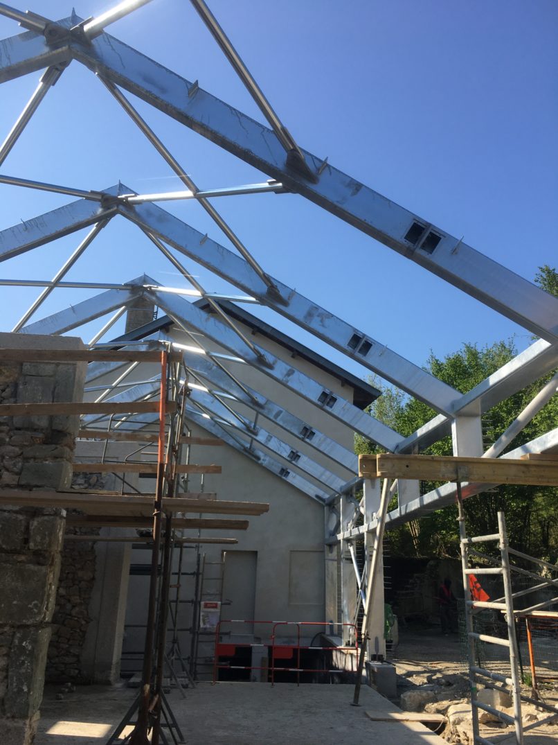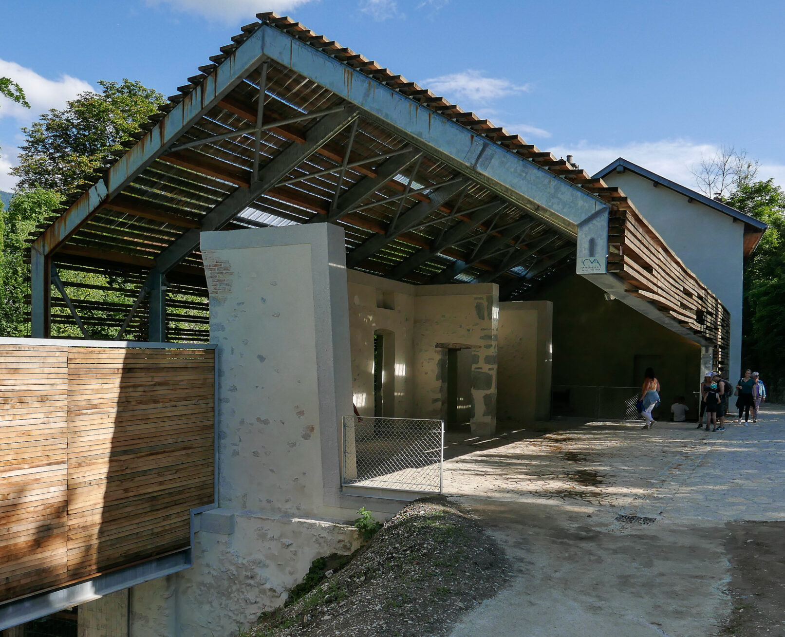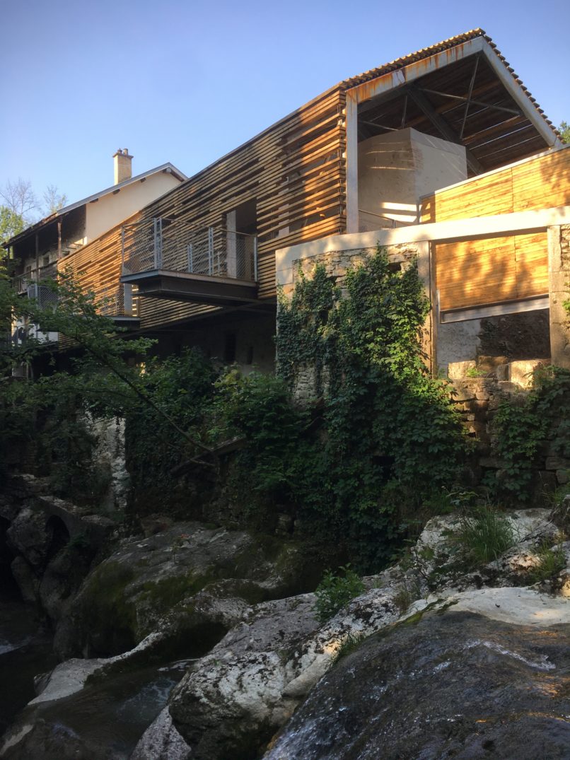 > 3 matières : le chêne, la pierre de Grésy, l’acier galvanisé
