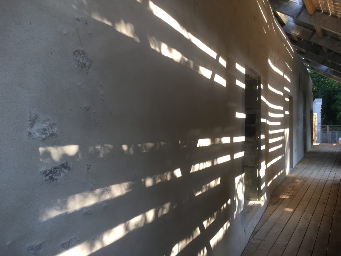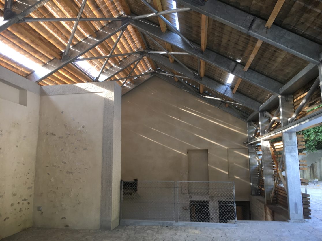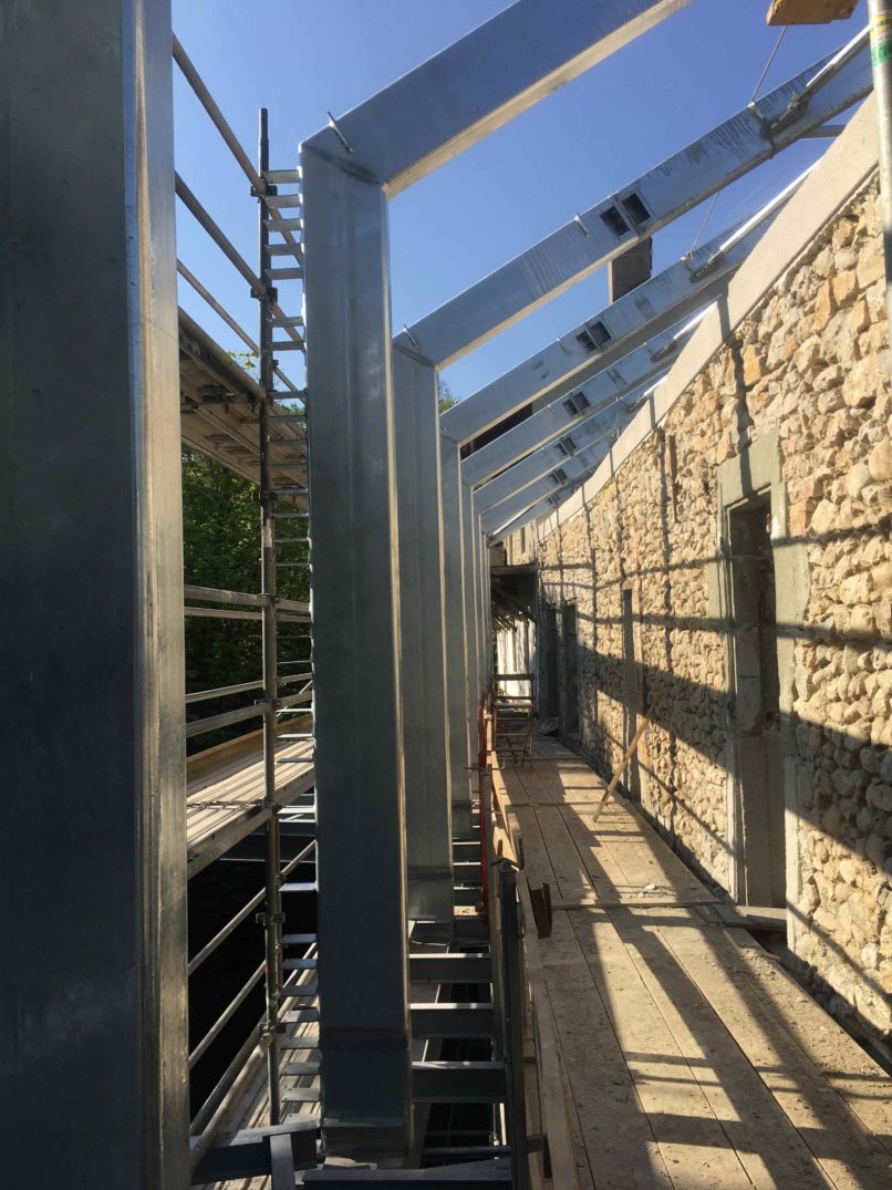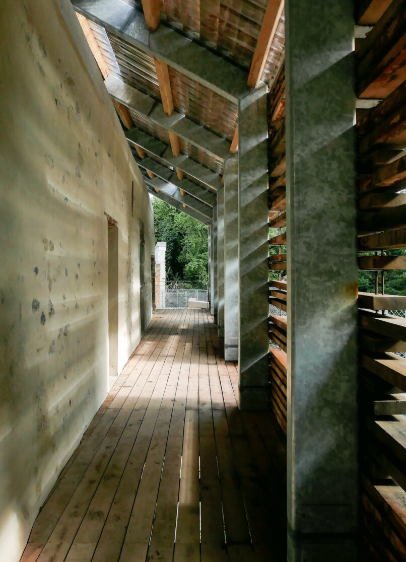 > 3 matières : le chêne, la pierre de Grésy, l’acier galvanisé