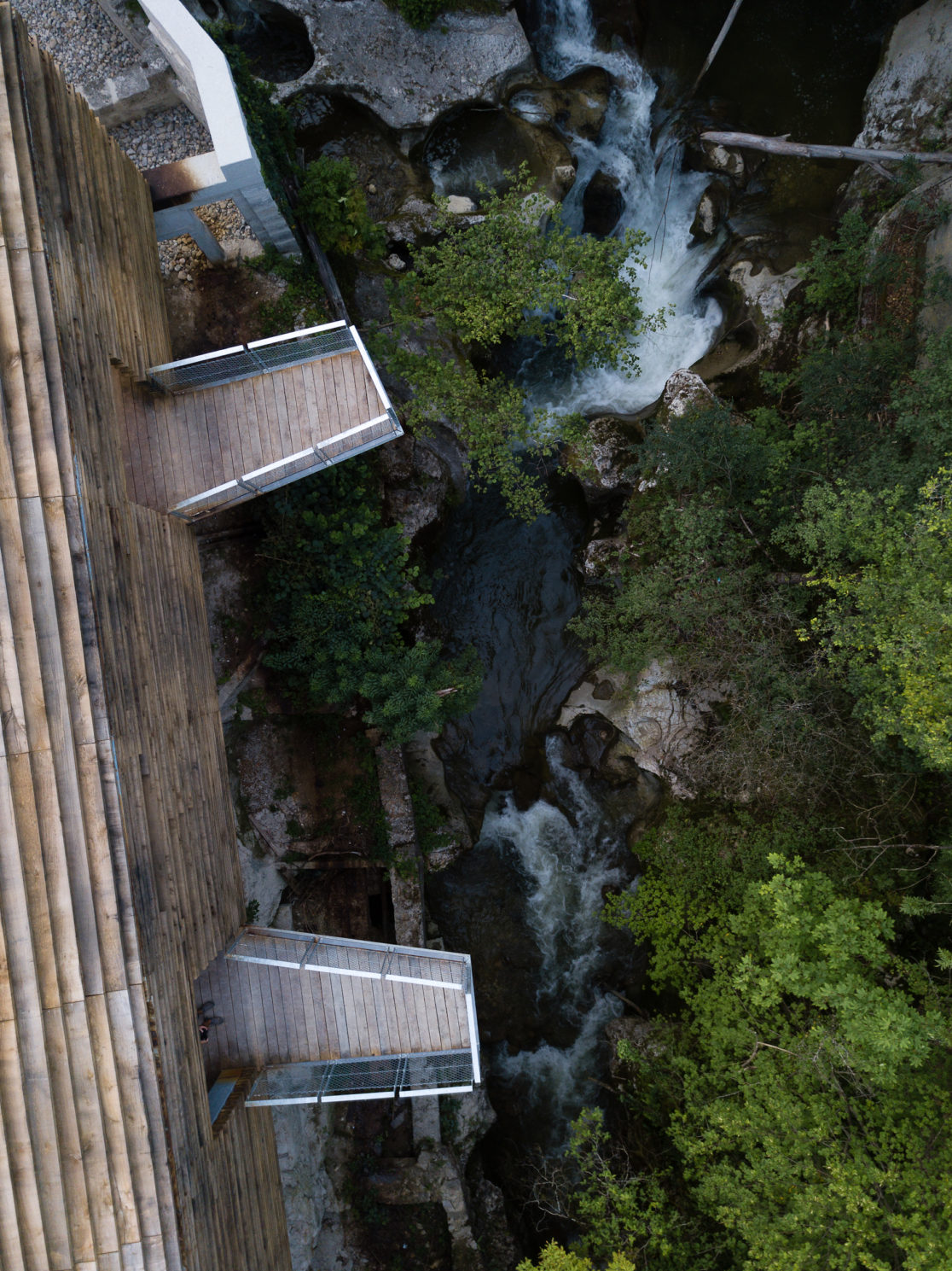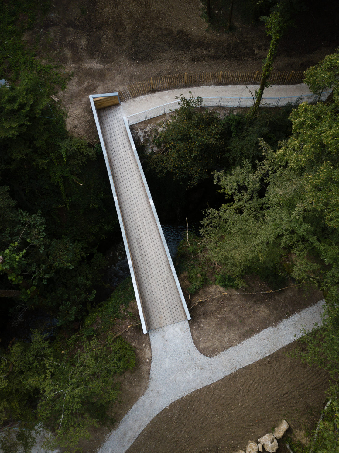 > 3 ouvrages : la halle muséographique et ses belvédères, la passerelle, les encorbellements