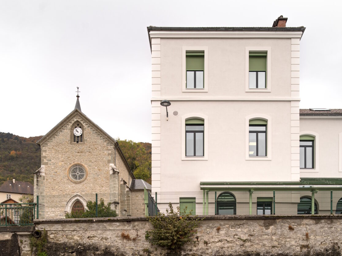 Le projet de rénovation de la mairie-école de Ruffieux en Chautagne, confronte les exigences contemporaines de performance énergétique et d’accessibilité universelle à un édifice institutionnel de la fin du XIXe siècle, repère du bourg et témoin de son histoire civique.