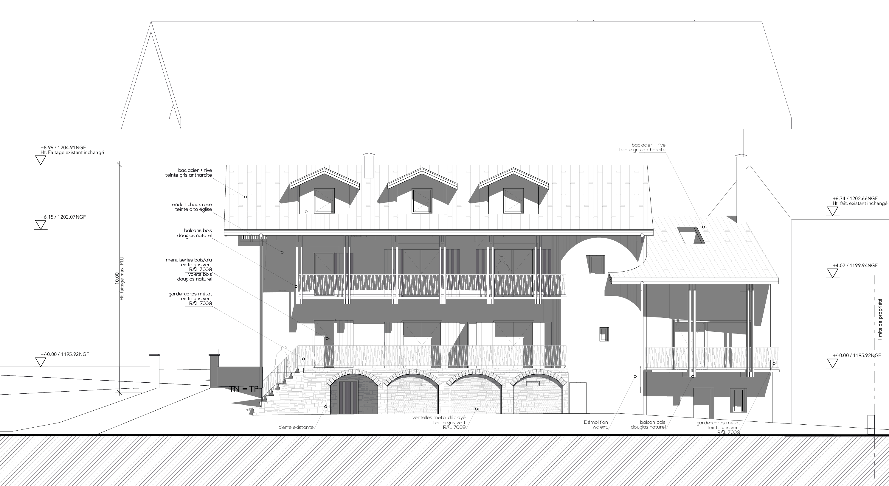 L’intervention vise une réhabilitation respectueuse : conserver les marqueurs authentiques du bâtiment tout en assurant sa mise aux normes, sa pérennité structurelle, et son adaptation au climat montagnard. Le projet valorisera également l’ouverture du site sur le grand paysage, en inscrivant le bâtiment dans une logique de continuité et d’usage renouvelé.